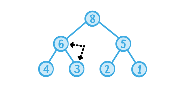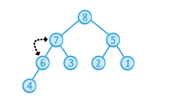 (maxheap이기 때문에 자식들 중 더 우선순위가 높은(값이 큰) 8과 swap하는 모습이다.)