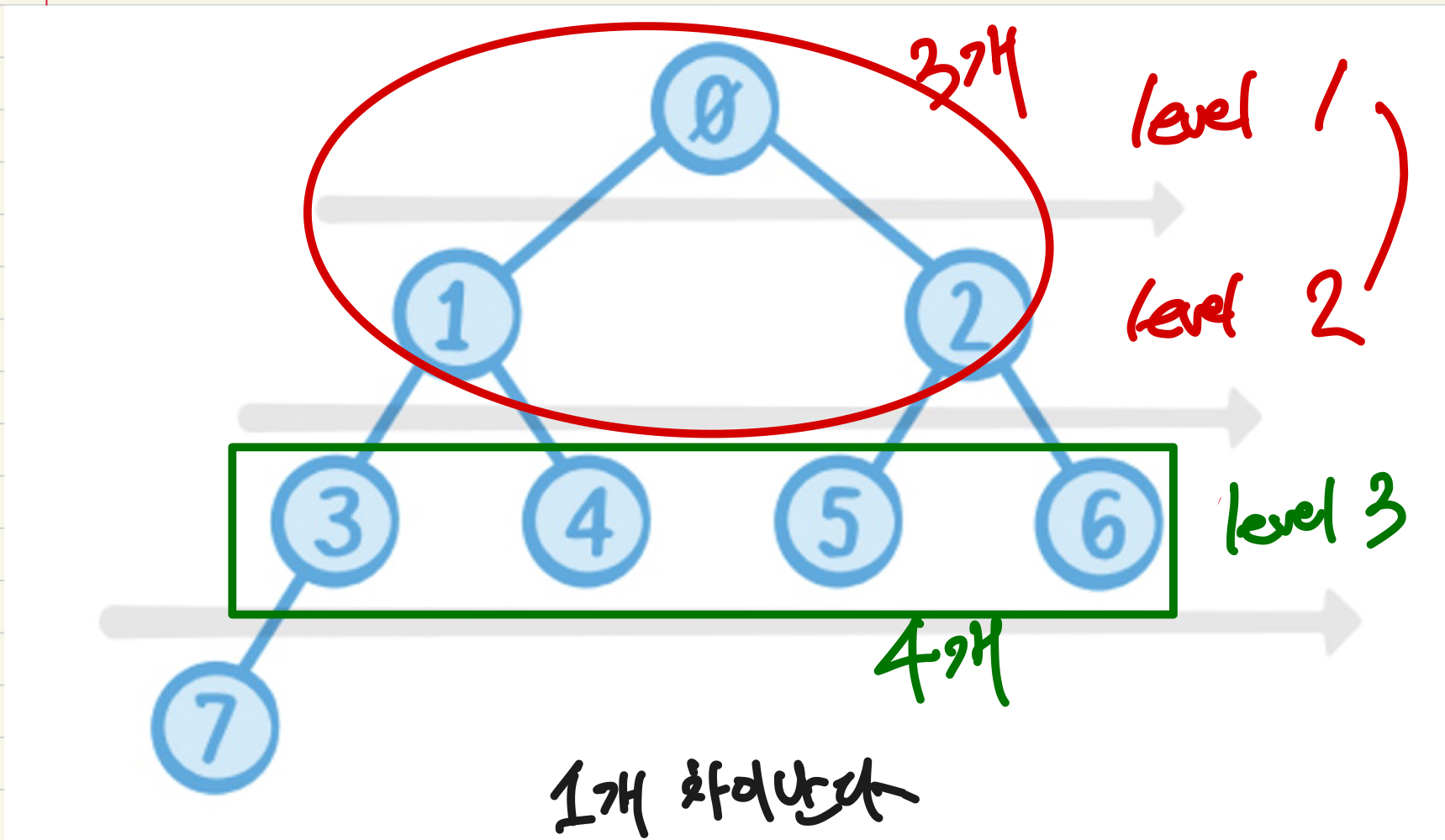 - 만약 heap의 매 level이 위의 level보다 두 배 더 많은 요소들을 가질 수 있다는 것을 기억한다면, 매 level은 해당 level보다 위에 있는 모든 level이 가진 요소들 보다 딱 한개 더 많은 요소를 가진다는 것을 알아낼 수 있다.