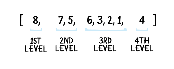 만약, 우리가 저 indices(indexes)들로 배열을 만든다면(element는 해당 index에 대한노드의 값), 아래와 같을 것이다.