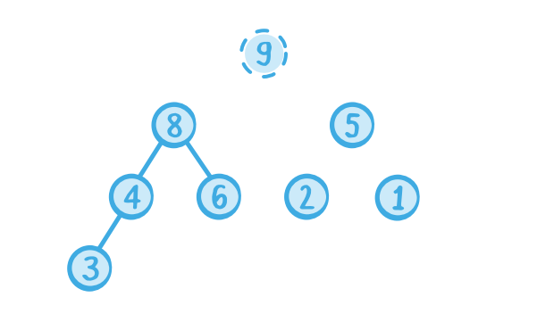 하지만, 루트 노드를 제거하는 것만으로는 힙이 남지 않습니다. 아니 오히려, 그것은 두 힙을 남길 것이다.