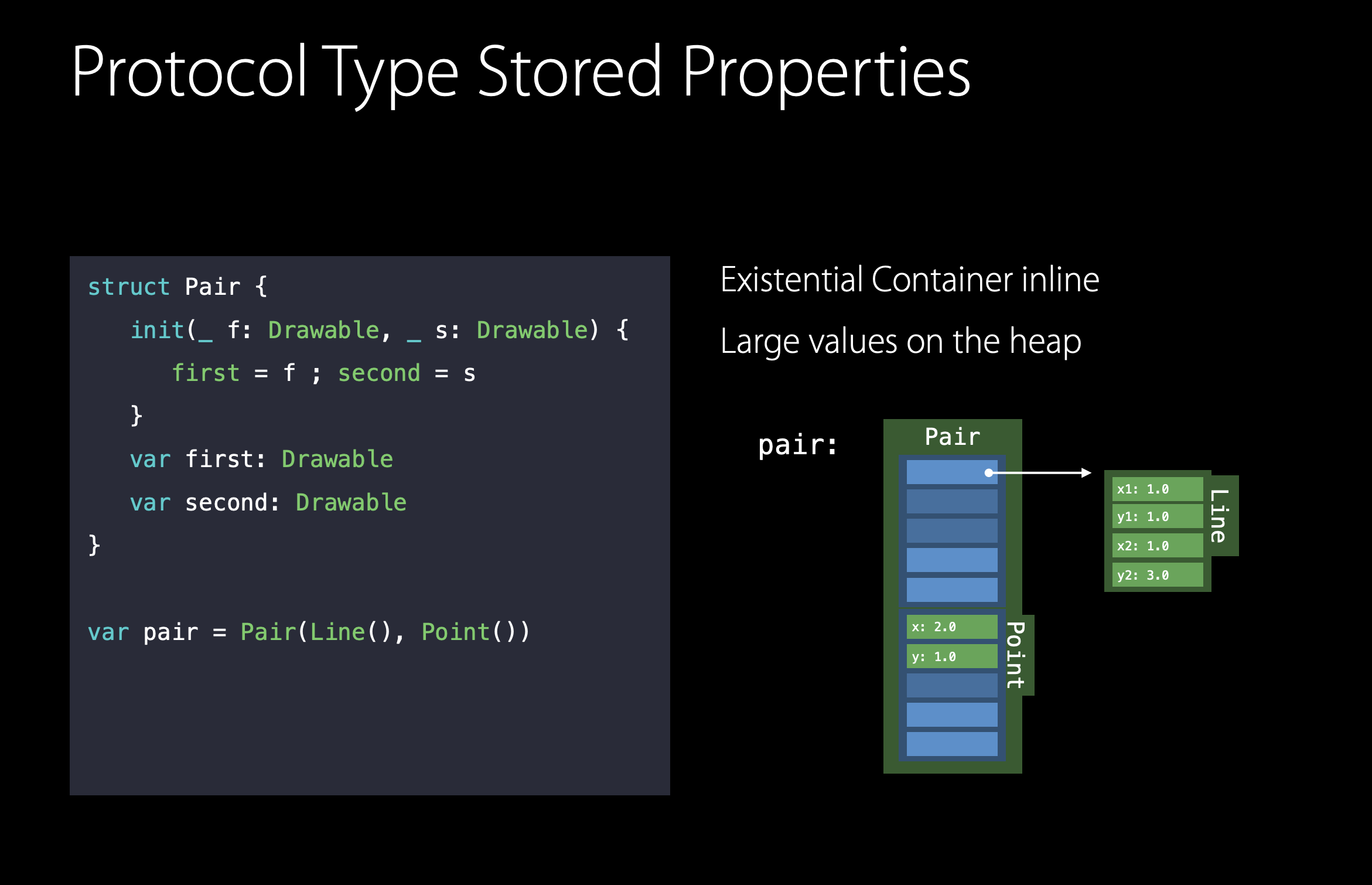 답은 Swift는 특별한 storage layout인 Existential Container를 사용한다.
