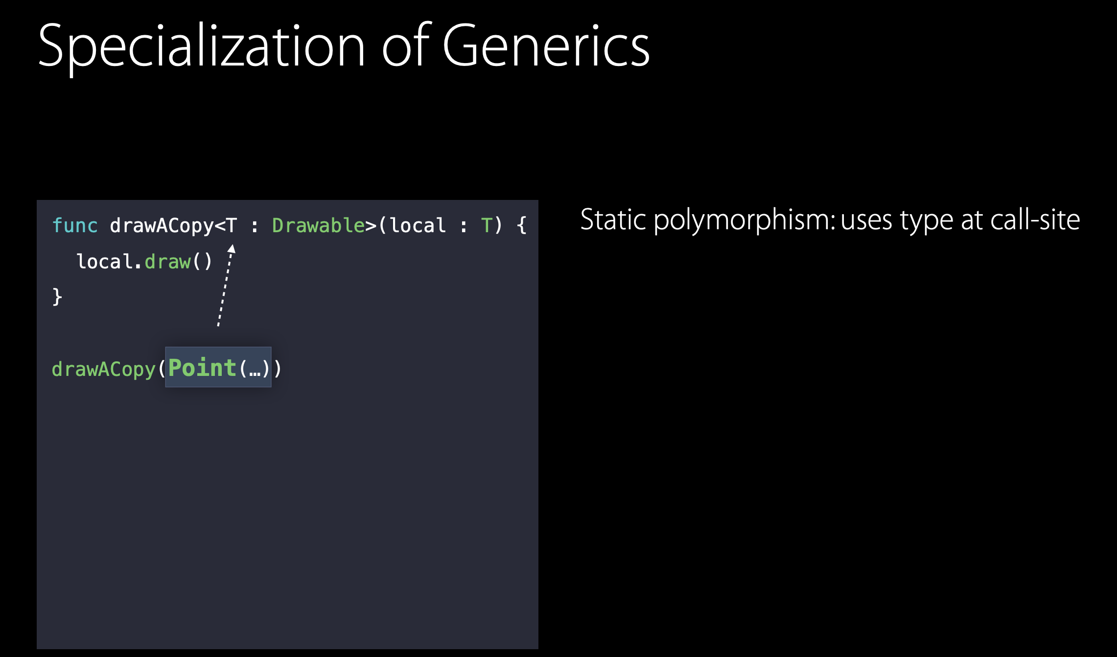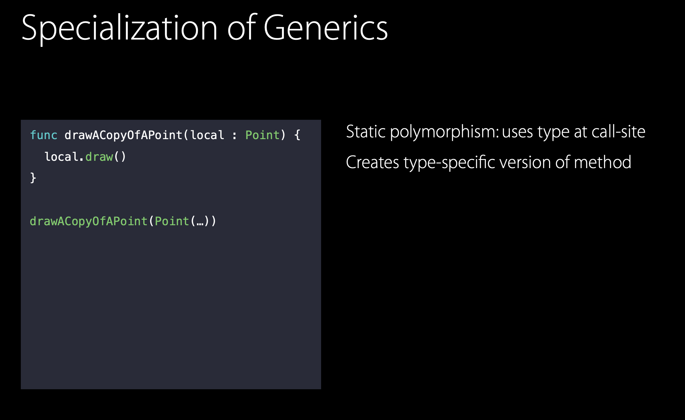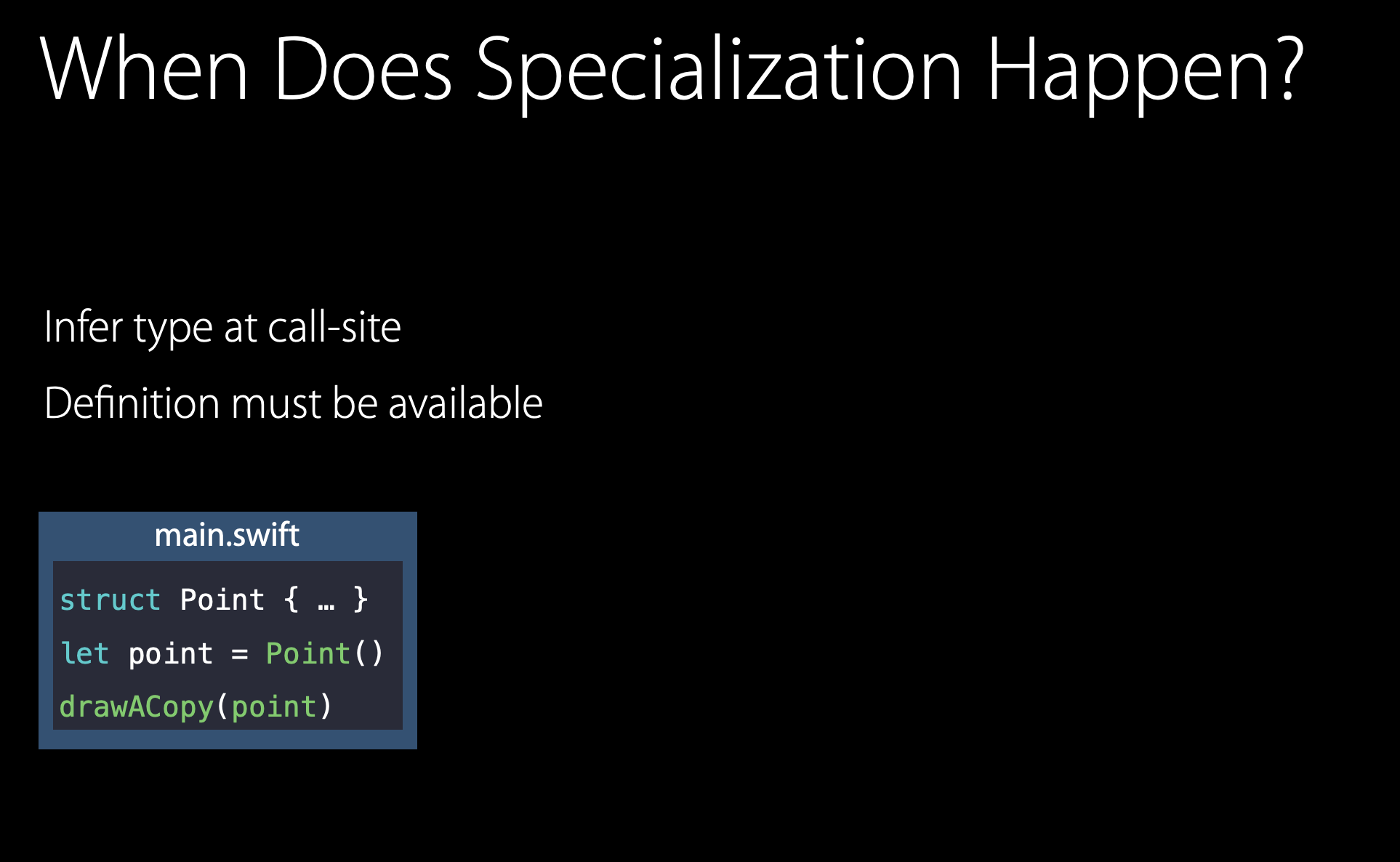 - 이 코드를 specialization하기 위해 Swift는 이 call site에서 타입을 유추할 수 있어야 한다.