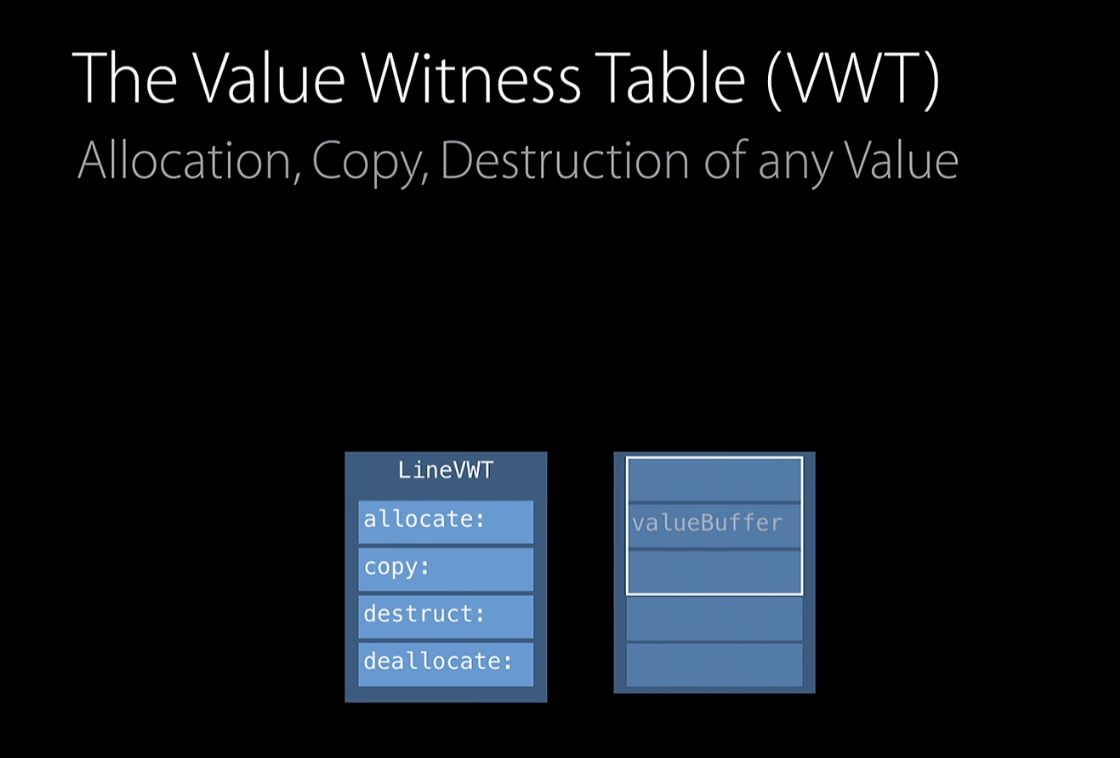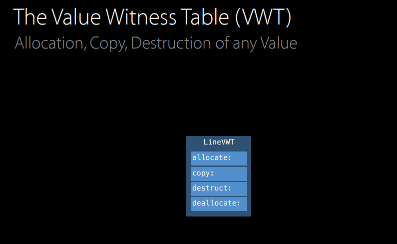 이 경우에도 table based mechanism이 사용되는데, 이것을 우리는 Value Witness Table(VWT)라고 부른다.