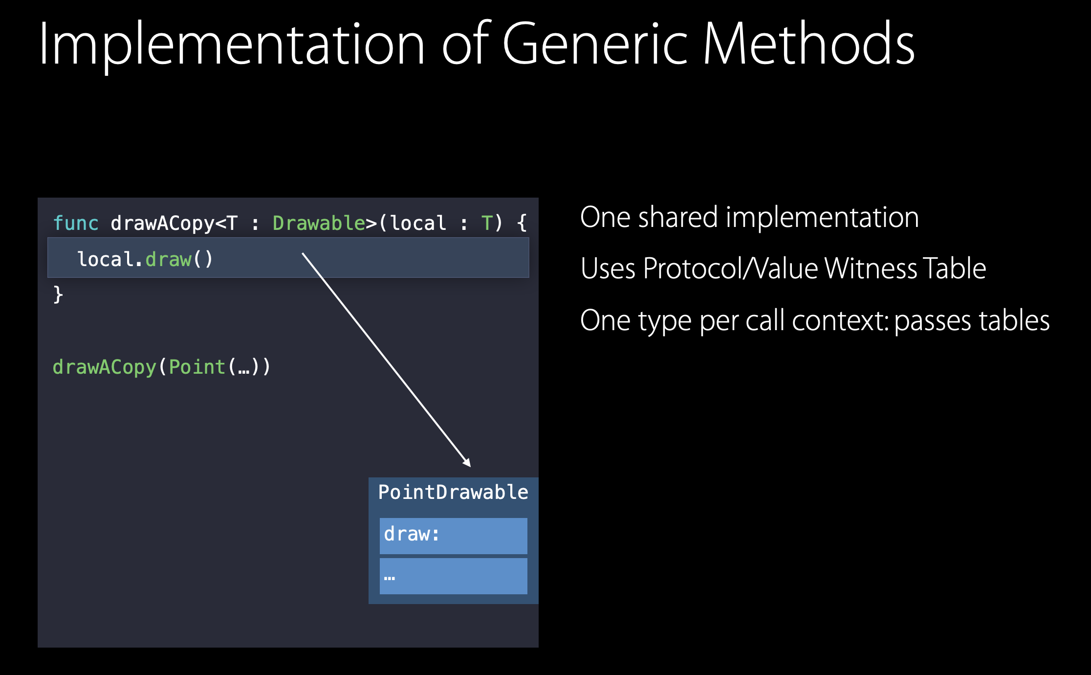 Point)의Value Witness Table과Protocol Witness Table을 함수의 추가적인 인자로써 전달한다.