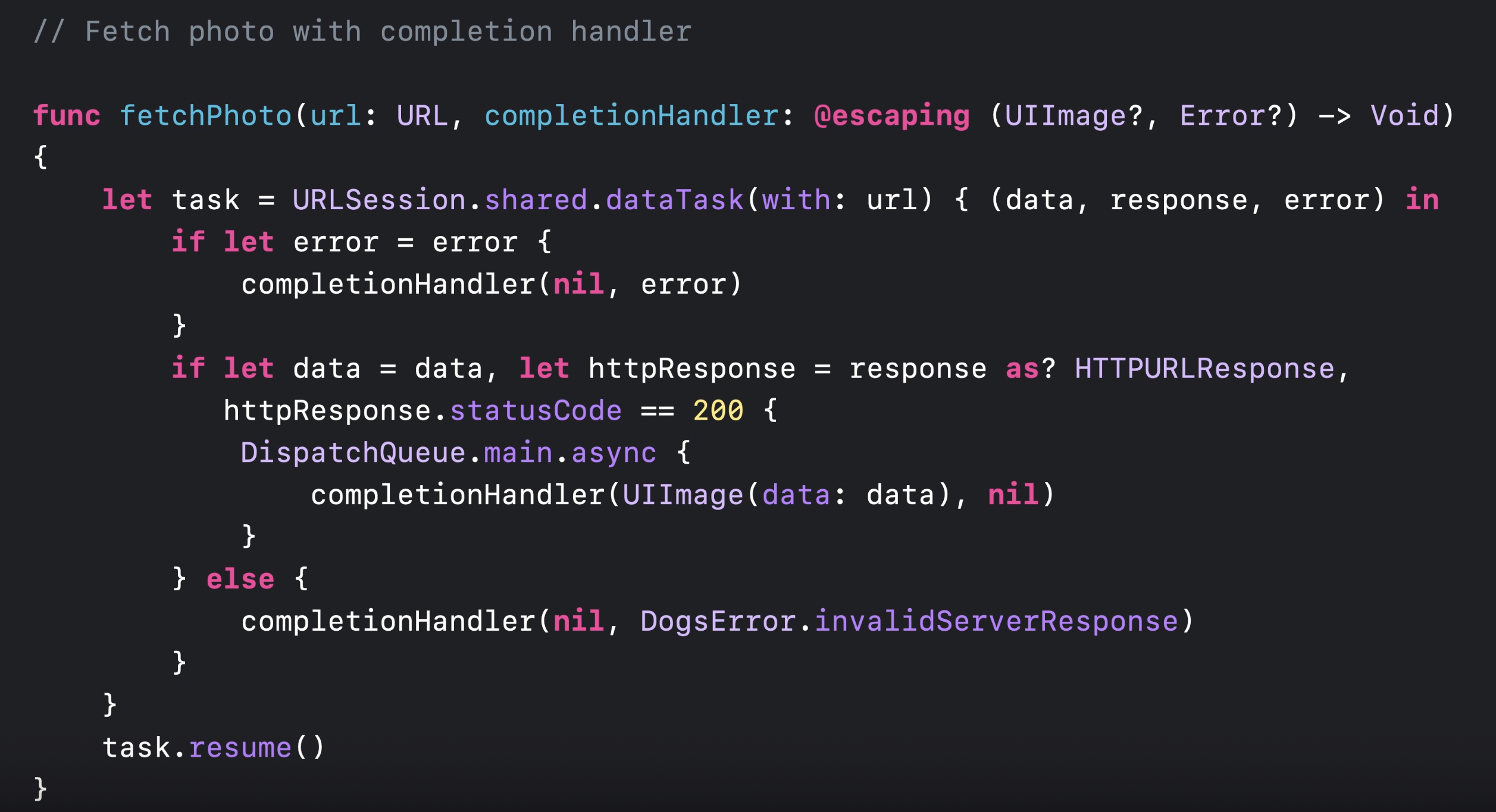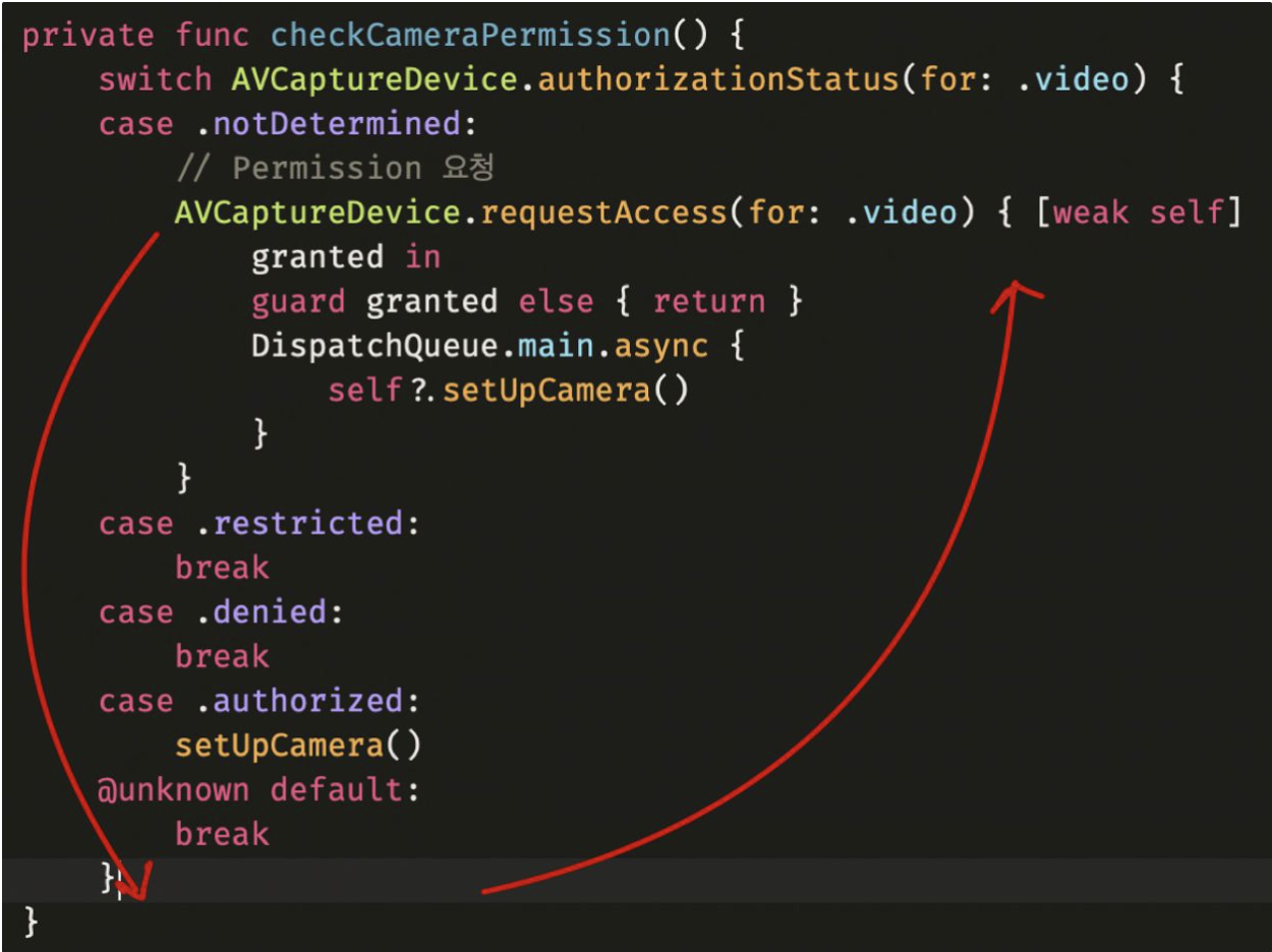 제가 학교에서 졸업프로젝트로 커스텀 카메라 화면을 만들어야하는 부분이 있는데 해당 부분을 구현하는 중에 completion handler를 사용하는 코드가 있어 이를 직접 async/await로 바꿔 적용해보겠습니다