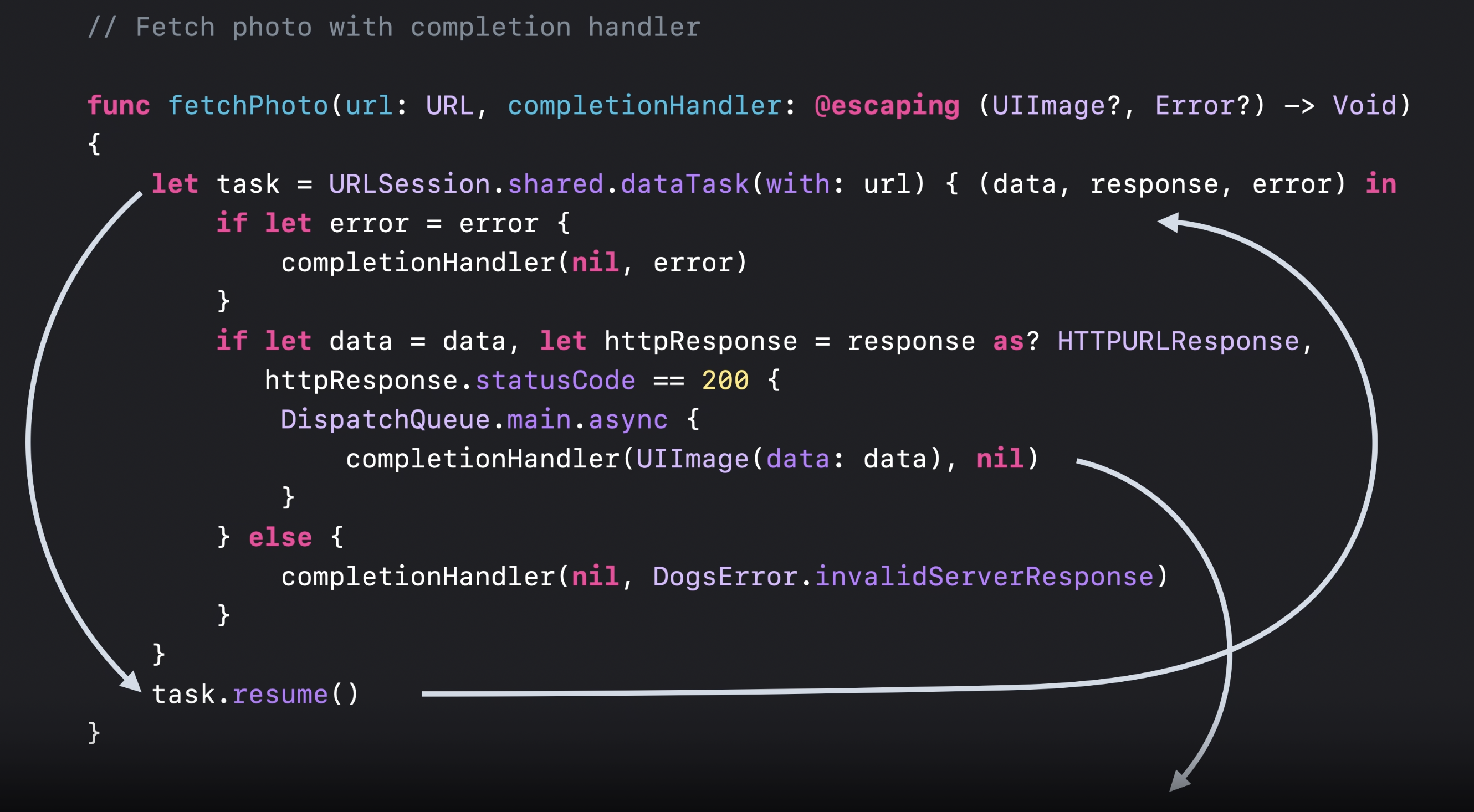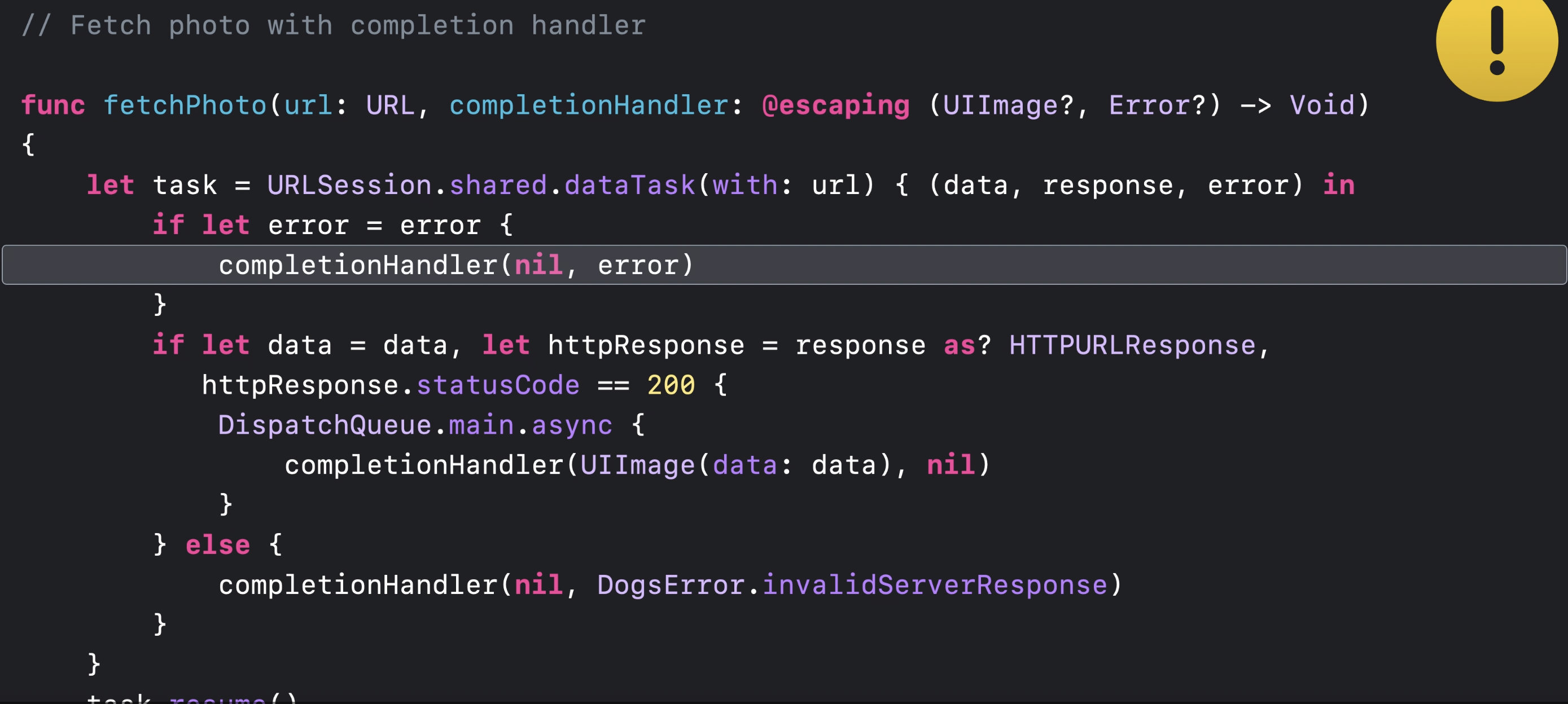 - error가 나면 거기서 completion handler를 호출하고 return해야합니다.