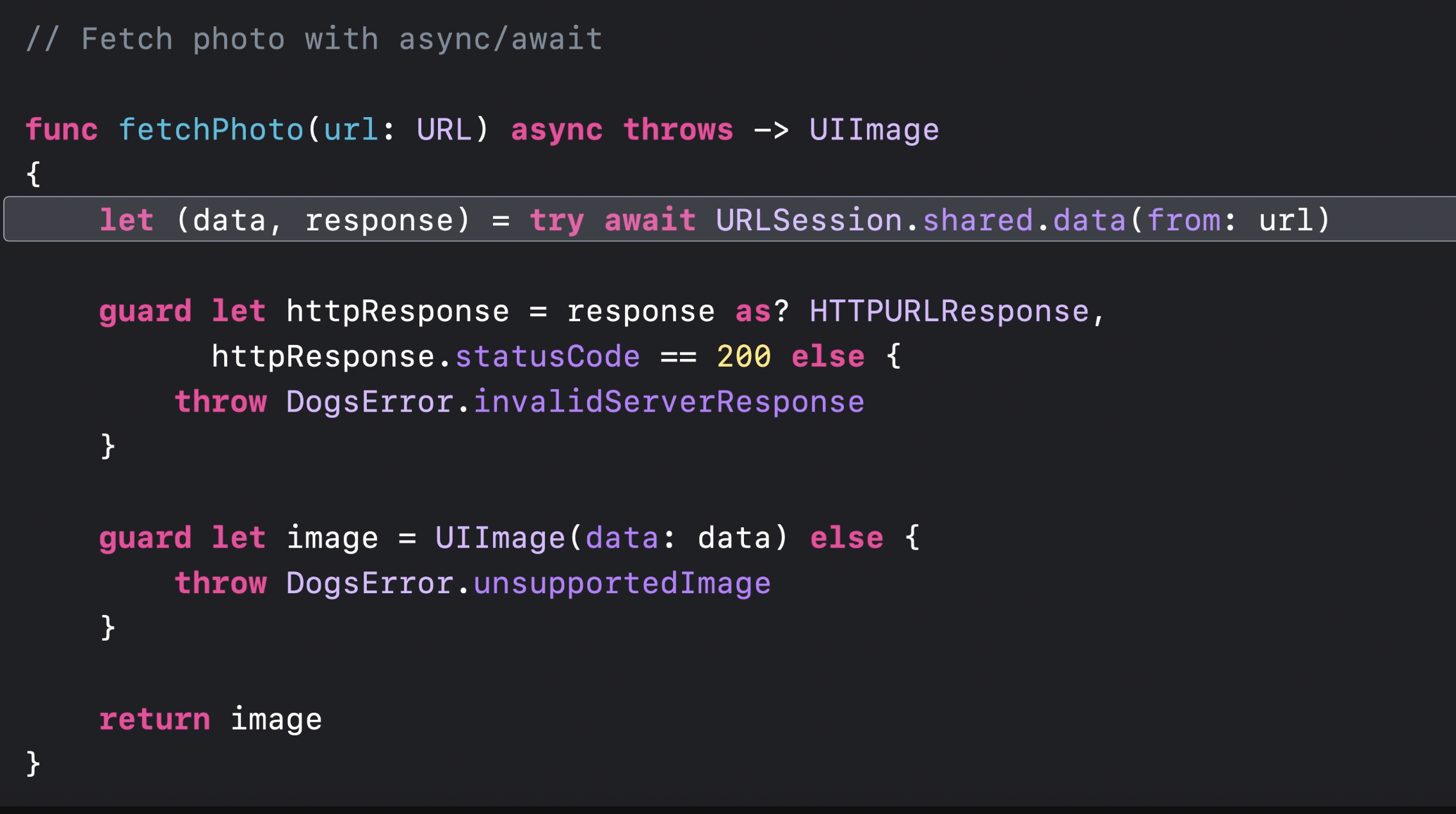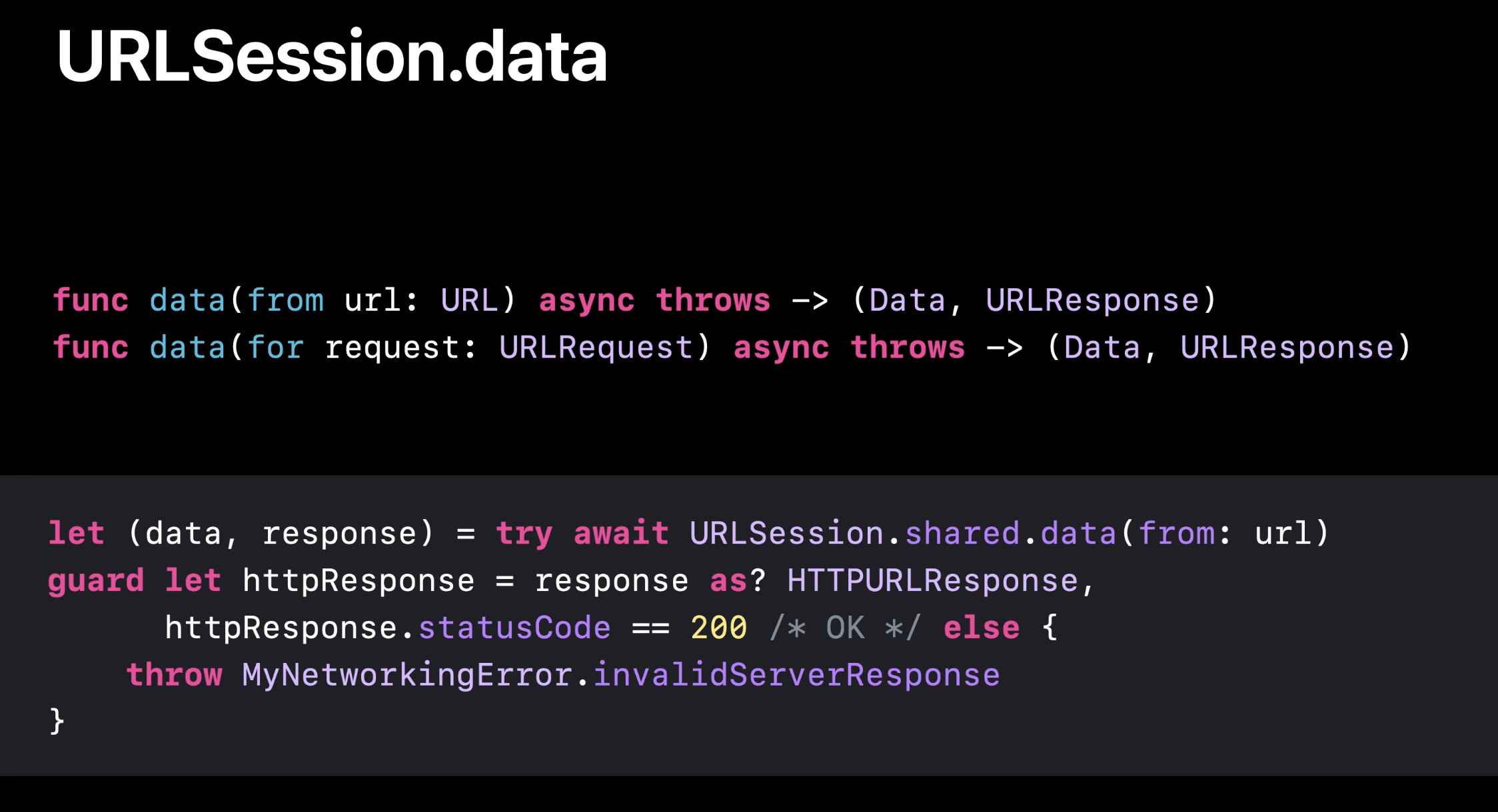 - URLSession.shared.data(from:) 은 async 메서드입니다.