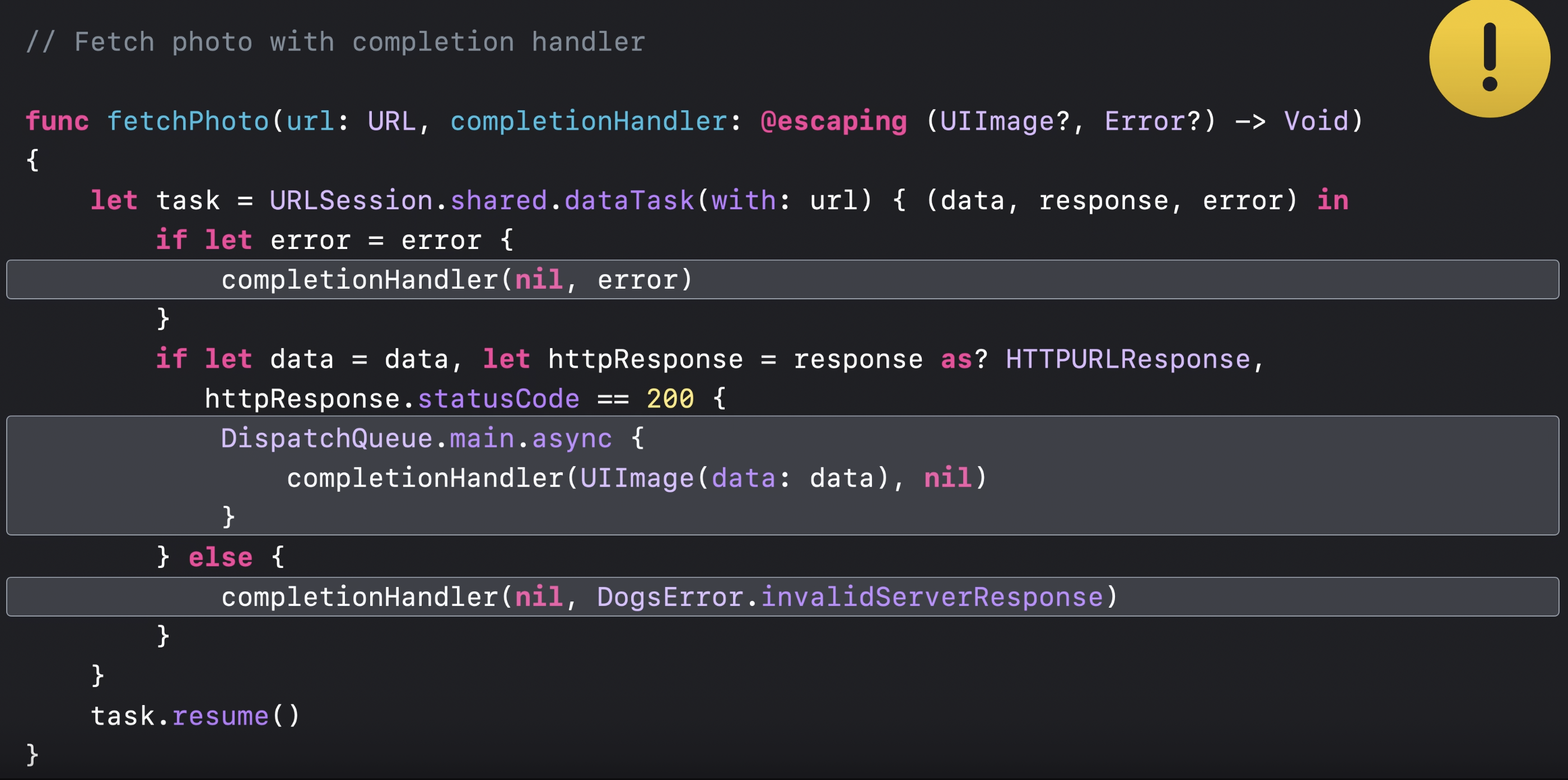 - error가 나면 거기서 completion handler를 호출하고 return해야합니다.