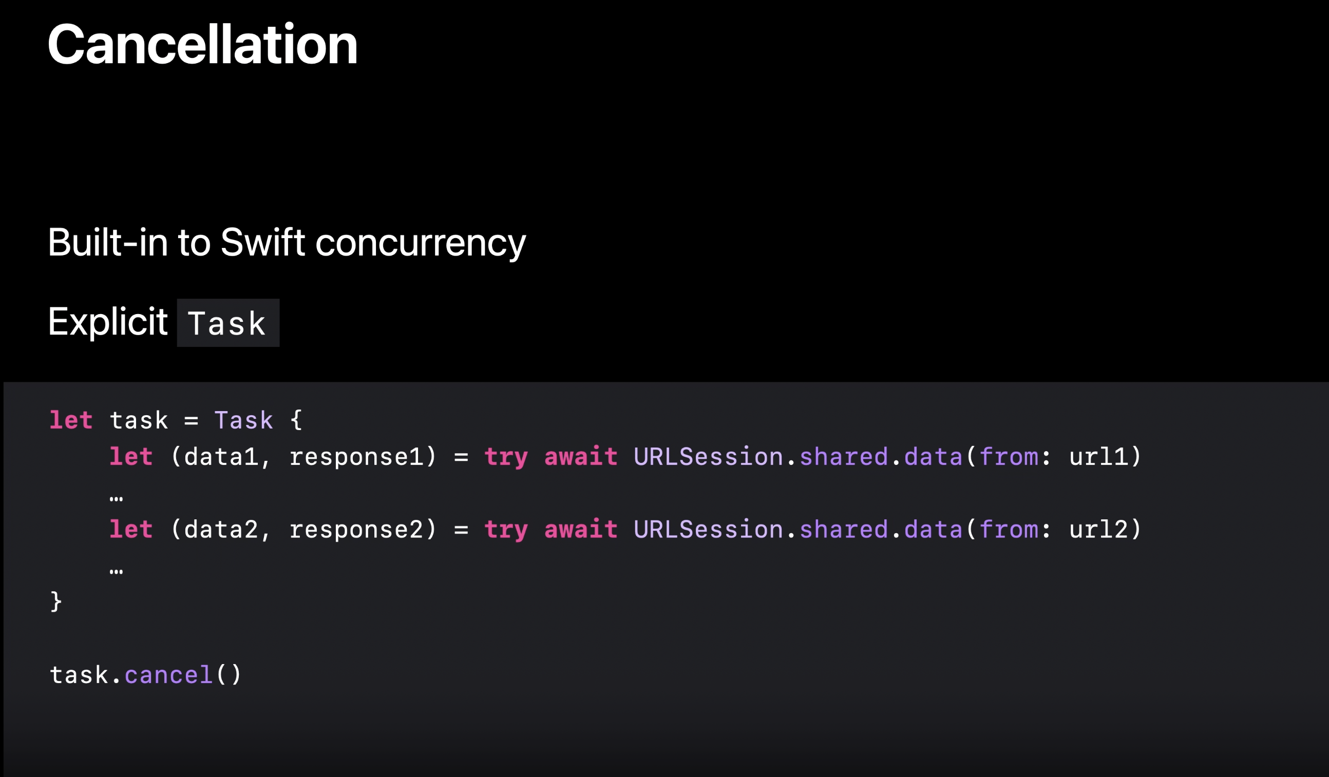 - Swift 동시성 취소는 URLSession async 메서드와 함께 작동합니다.