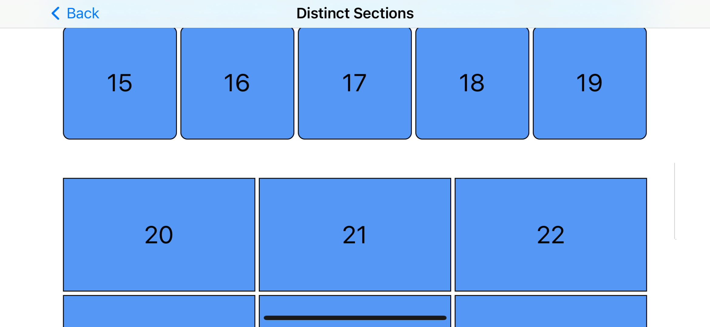 - group의 사이즈를 우리는 CollectionView의 width에 44의 height를 갖게 한 다음, item size를 width와 height을 모두 100%로 해서 item의 container가 group이다 라고 정해주면 위의 사진과 같이 된다.