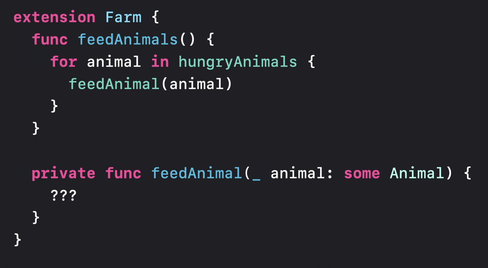 private func feedAnimal(_ animal: some Animal) {