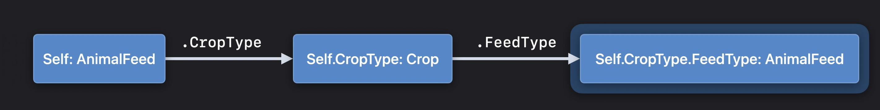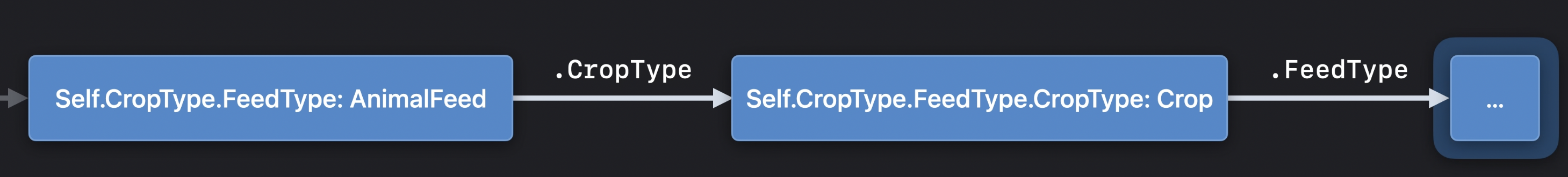 (some Animal).FeedType.CropType.FeedType 이라고 한다.