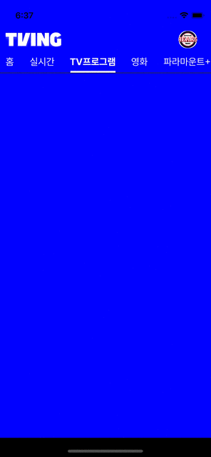 - 상단 탭바만 보면 옆으로 스와이프를 하면 화면이 넘어가는 것을 볼 수 있다. 그리고 횡스크롤이 가능해야한다.