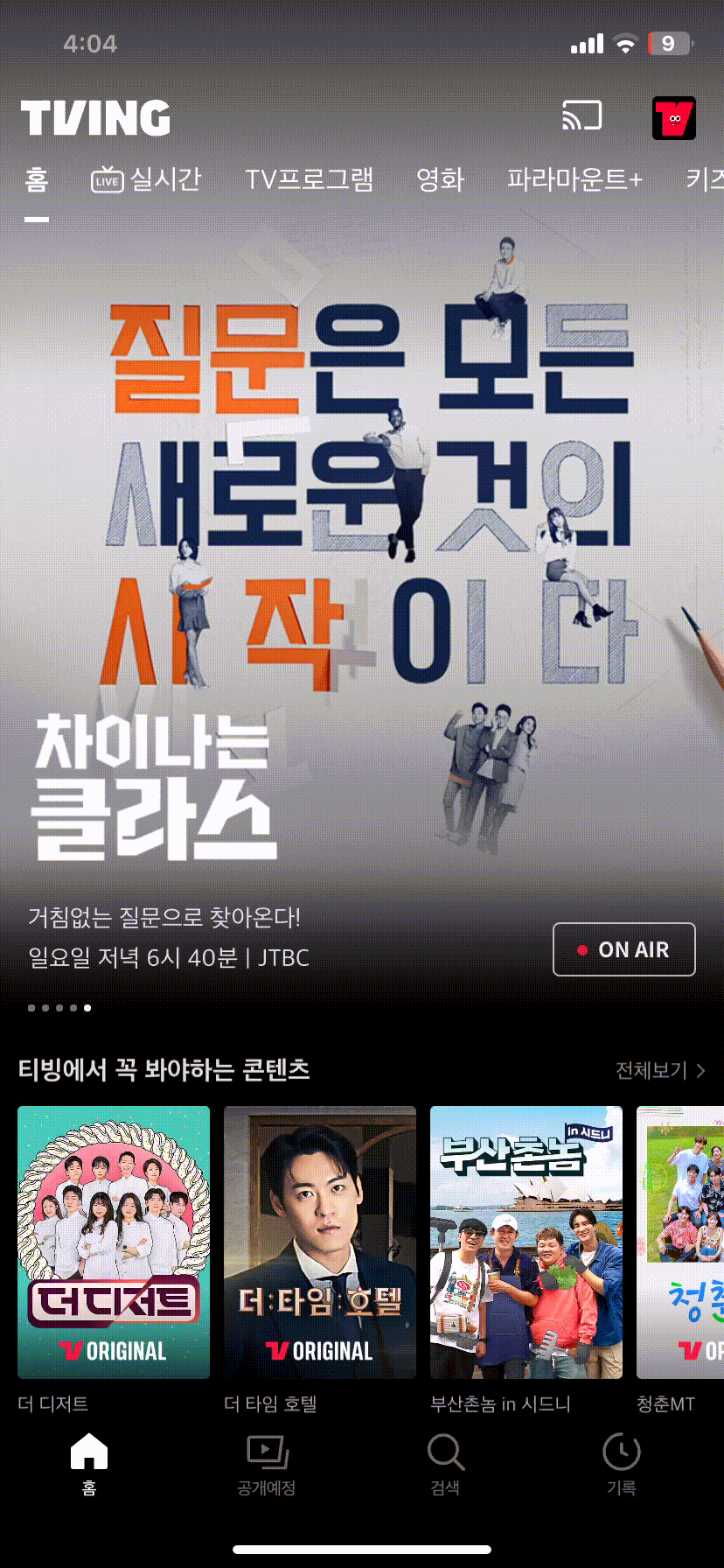 - 탭을 눌렀을 때, TVING로고를 눌렀을 때