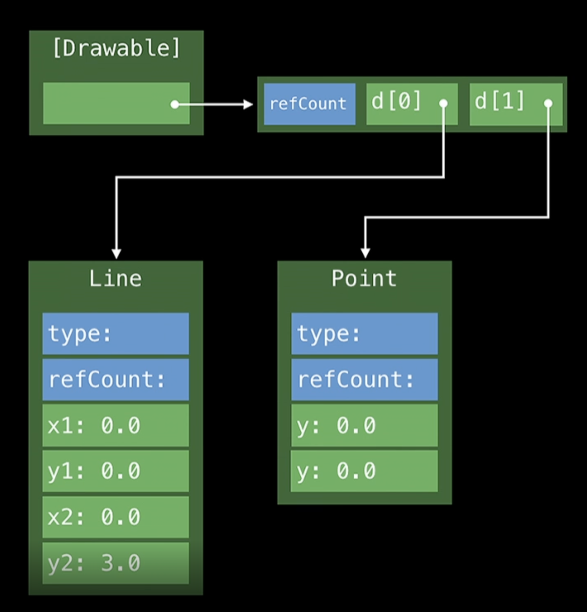 let point1 = Point(x: 0, y: 0) // Point의 RC는 1로 초기화되면서 시작한다.