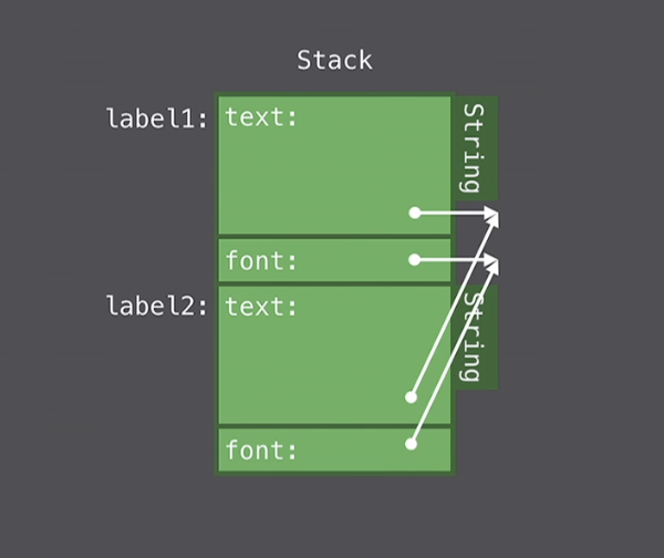 let point1 = Point(x: 0, y: 0) 이 코드를 실행하면서 Swift는 힙을 Lock하고 적절한 사이즈의 사용되지 않는 빈공간의 메모리을 찾아서 x와 y값을 초기화하고 Point1에 대한 Referenence를 해당 메모리에 대한 주소로 초기화할 수 있다.