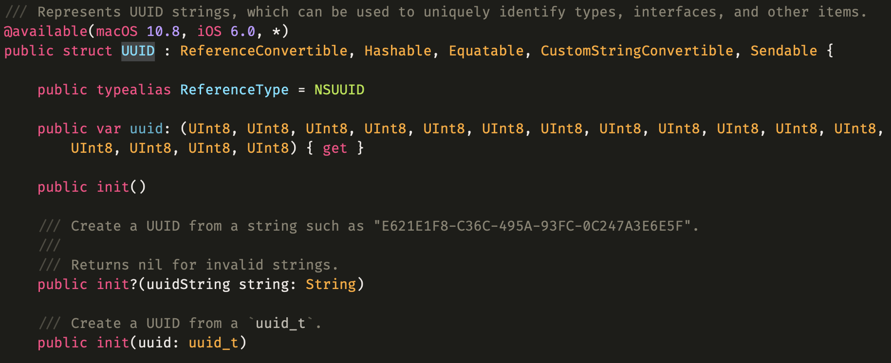 위와 같은 struct을 이용해서 Key값을 만들 수 있다. Swift에서 struct는 일급 시민이기 때문에, struct를 딕셔너리의 key값으로 사용할 수 있기 때문에 String으로 key값을 다루는 것보다 이 편이 훨씬 안전하다.