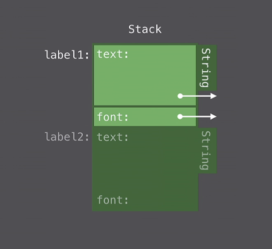 Note: Swift는 Point클래스를 위해 4words만큼 메모리를 할당했는데(Stack은 2 words), 그 이유는 Point가 클래스이고, 추가로 x와 y가 저장되어 있기 때문이다.