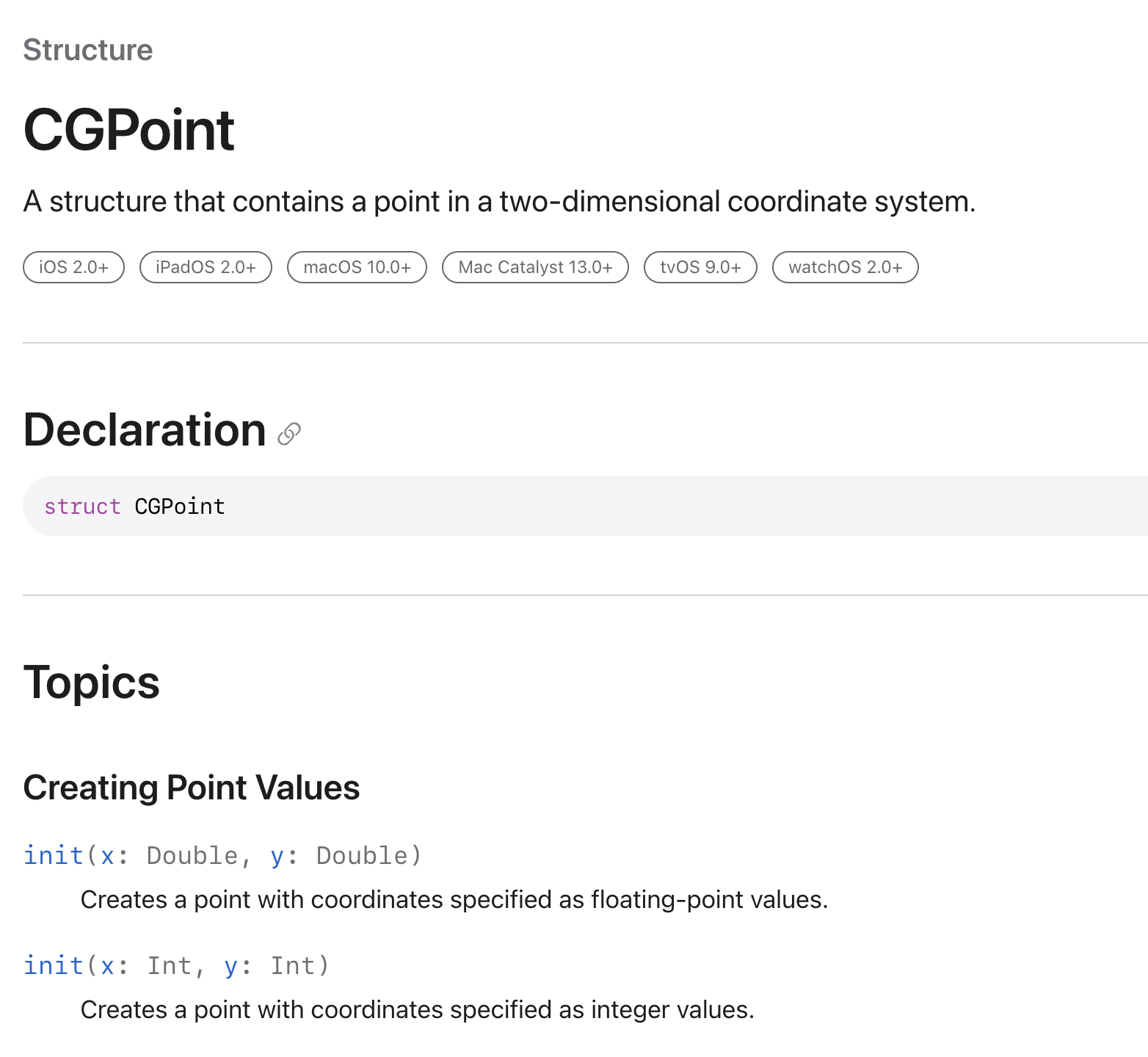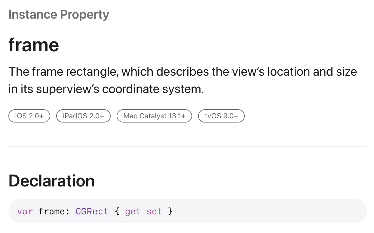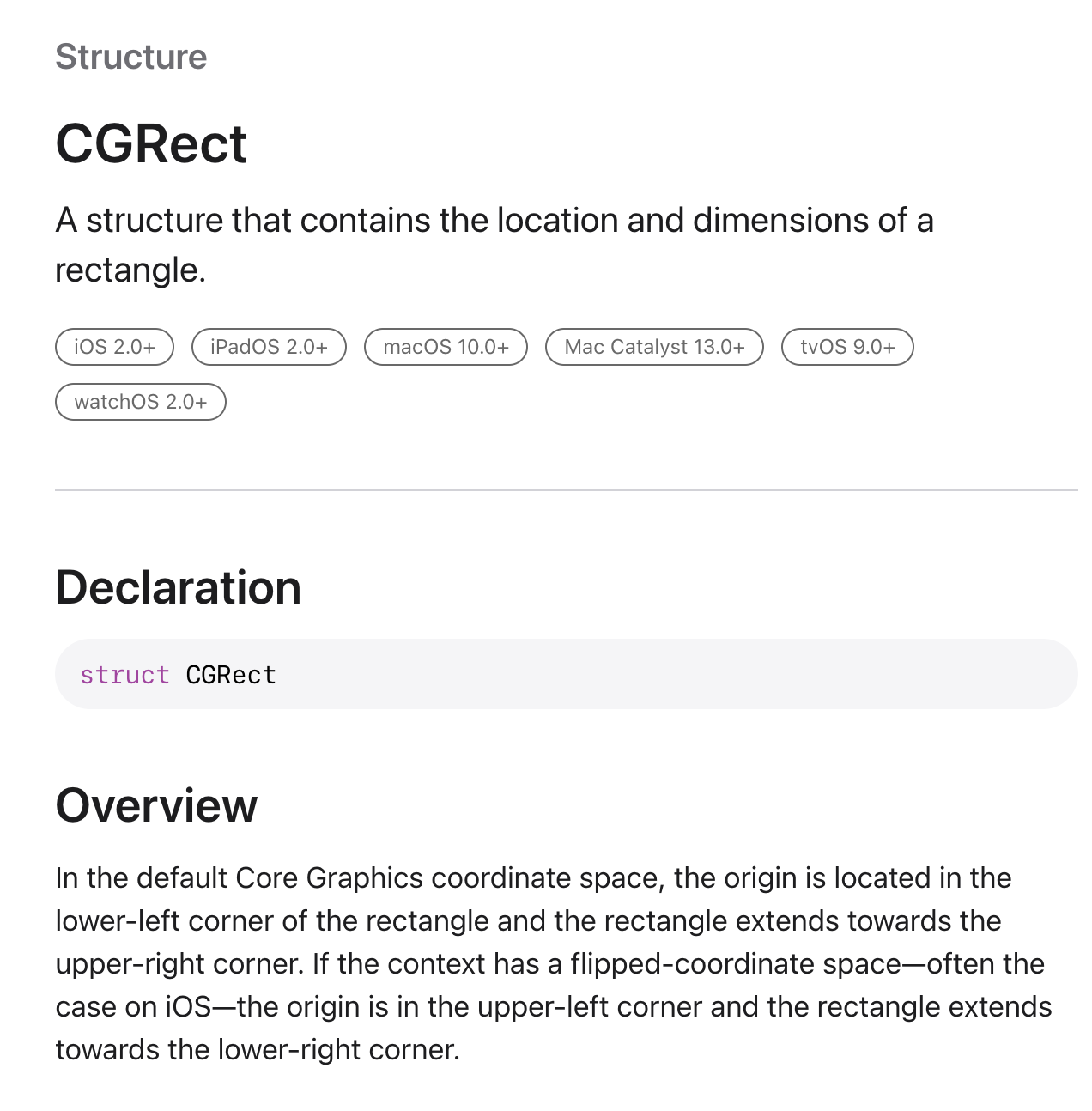 코드를 살펴보면 frame의 타입은 CGRect인걸 알 수 있습니다.