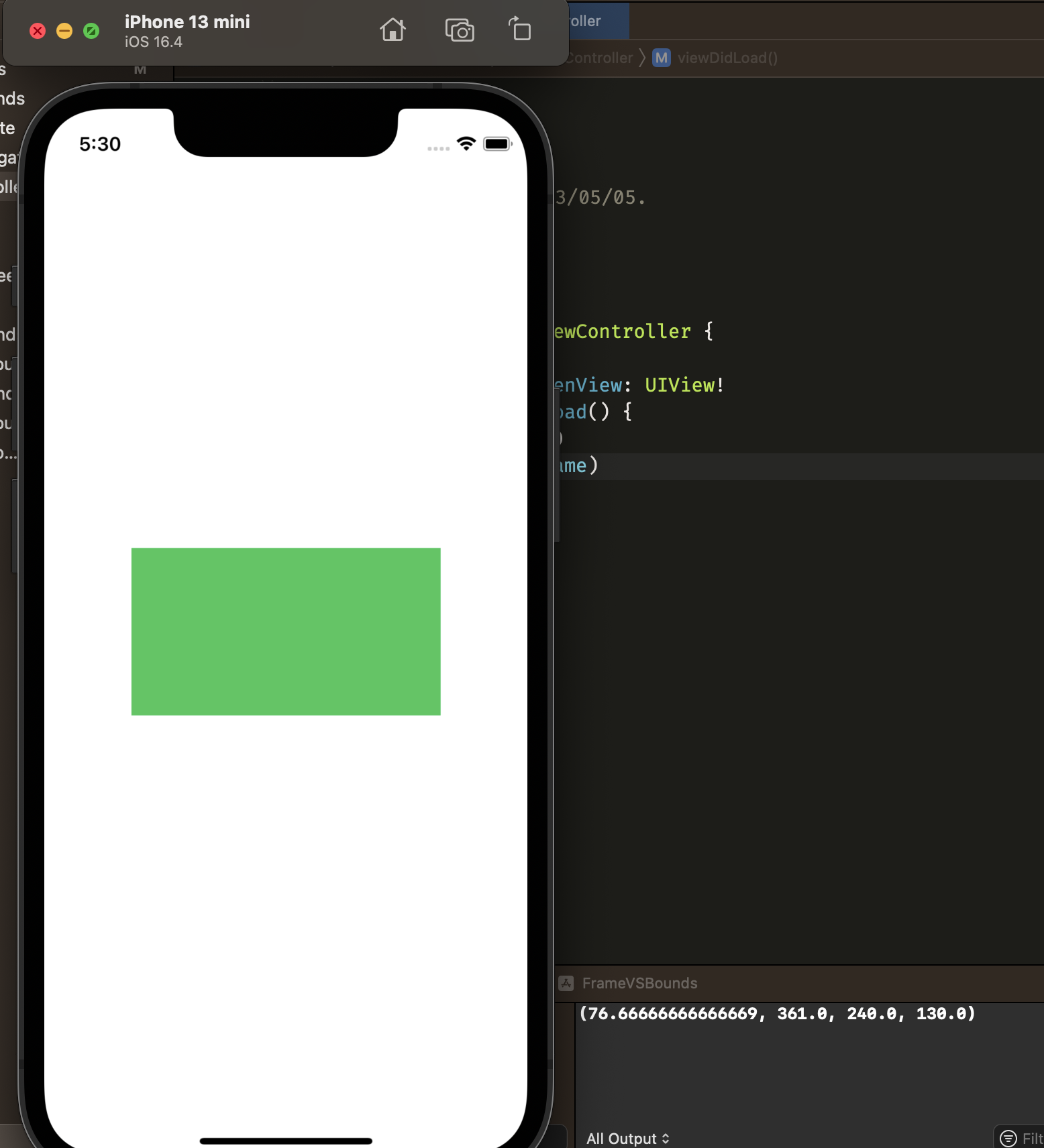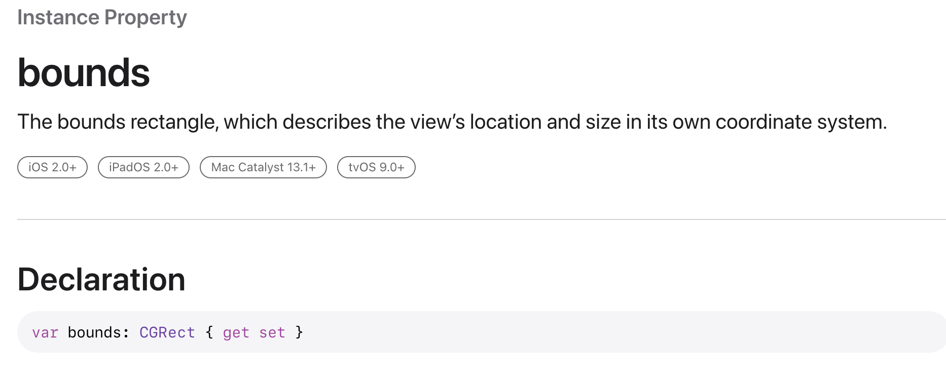 bounds를 보면 origin (0, 0)에 우리가 처음 설정해줬던 width 240 height 130값이 온전히 들어있는 것을 확인할 수 있습니다.