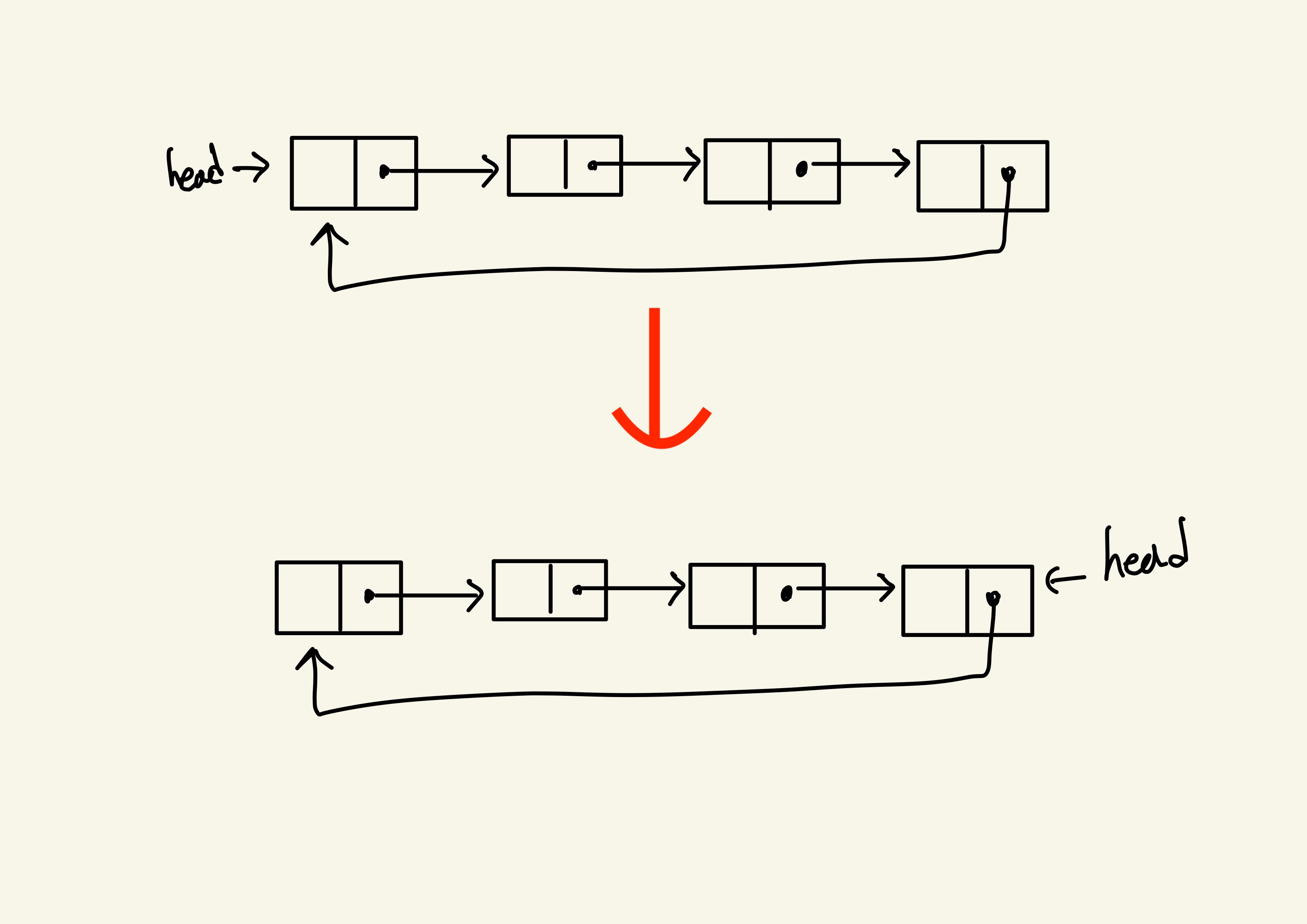 그러면 어떻게 해야할까? head를 맨 뒤로 보내버린다, 즉 tail 느낌의 포인터로 활용하면 됩니다.