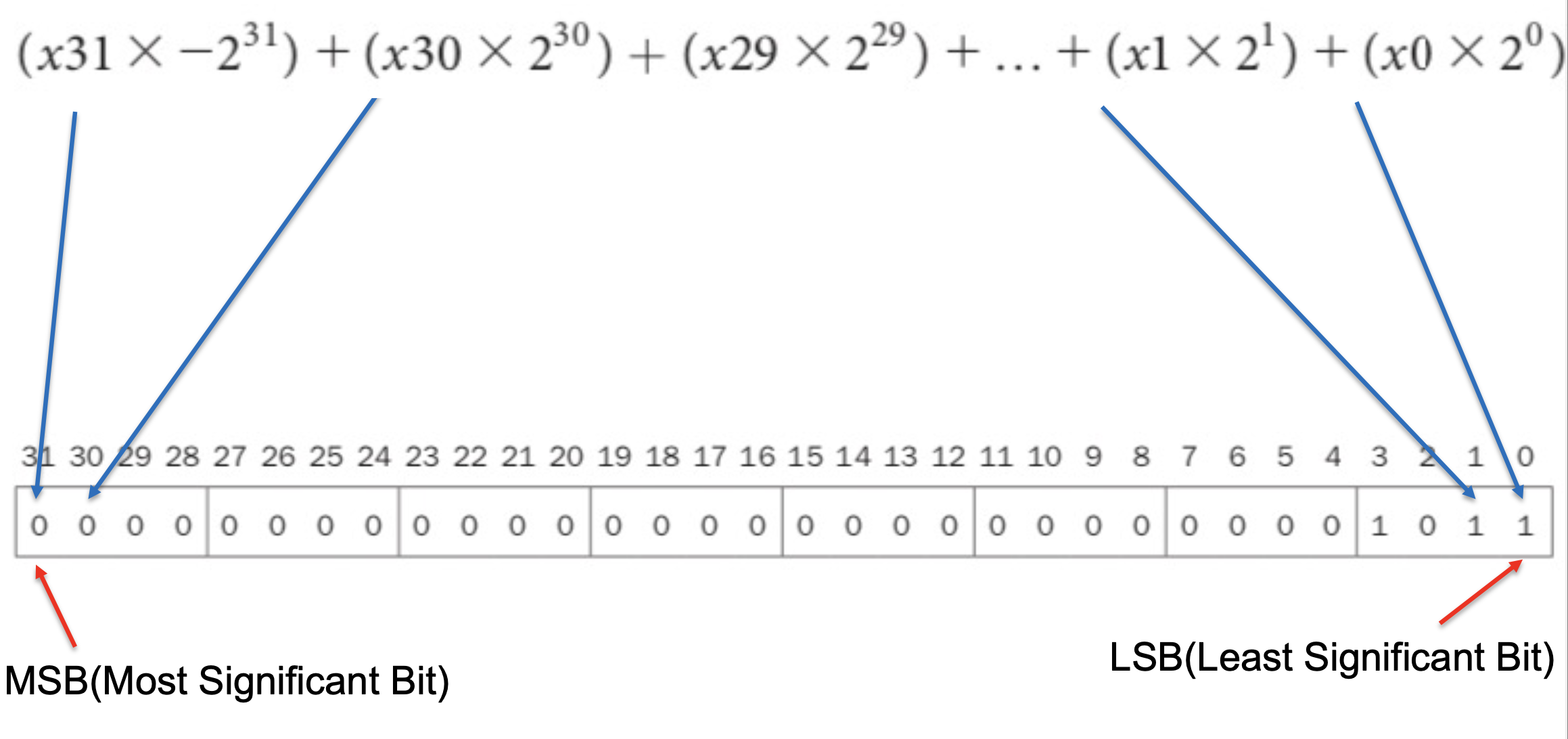 MSB를 살펴보면 MSB의 값은 이제 x31 * -2^31이 된다.