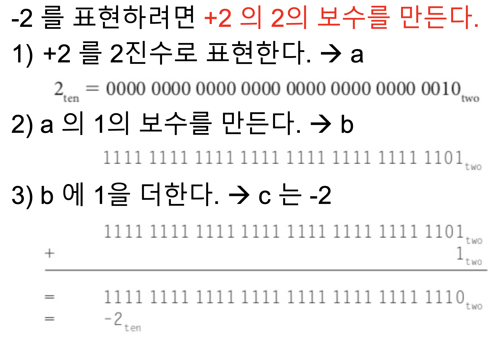 이렇게 표현하는 것을 2의 보수 표현이라고 한다.