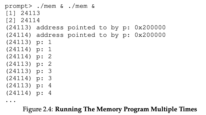위 프로그램 실행 사진을 보면 두개의 프로세스(241113, 24114)에서 각각 변수가 p가 저장된 메모리 주소를 출력하고 있습니다.