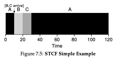 7.5 Shortest Time-to-Completion First (STCF): 완료까지 남은 시간이 가장 짧은 것을 먼저하자