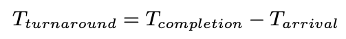 Turnaround time = completion time(작업이 끝난 시간) - arrive time(작업이 도착한 시간)