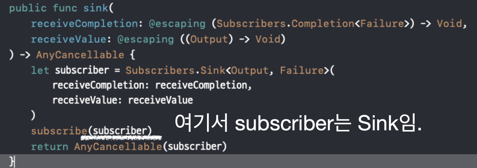 여기서 Subject와 연결된 것이 Sink이기에 (구독권을 가지고 있다는 이유로) Sink로 바로 값을 보내주고 있구나 라고 생각했습니다.