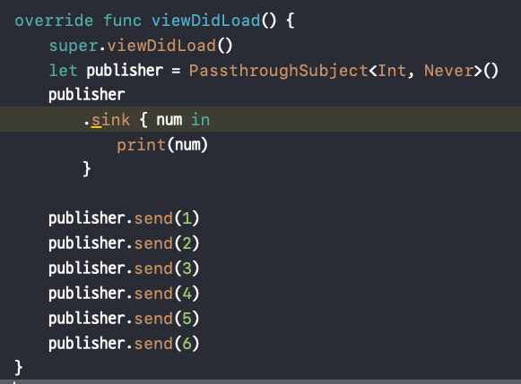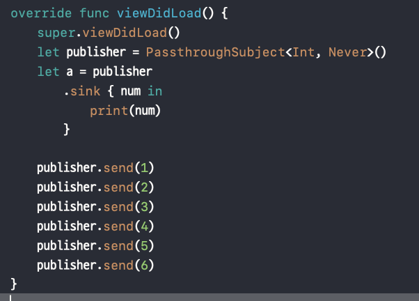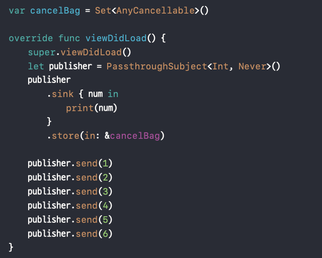 let publisher = PassthroughSubject<Int, Never>()