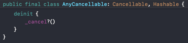 사실 우리가 호출한 cancel은 AnyCancellable이라는 객체에 있는 cancel 메서드입니다.
