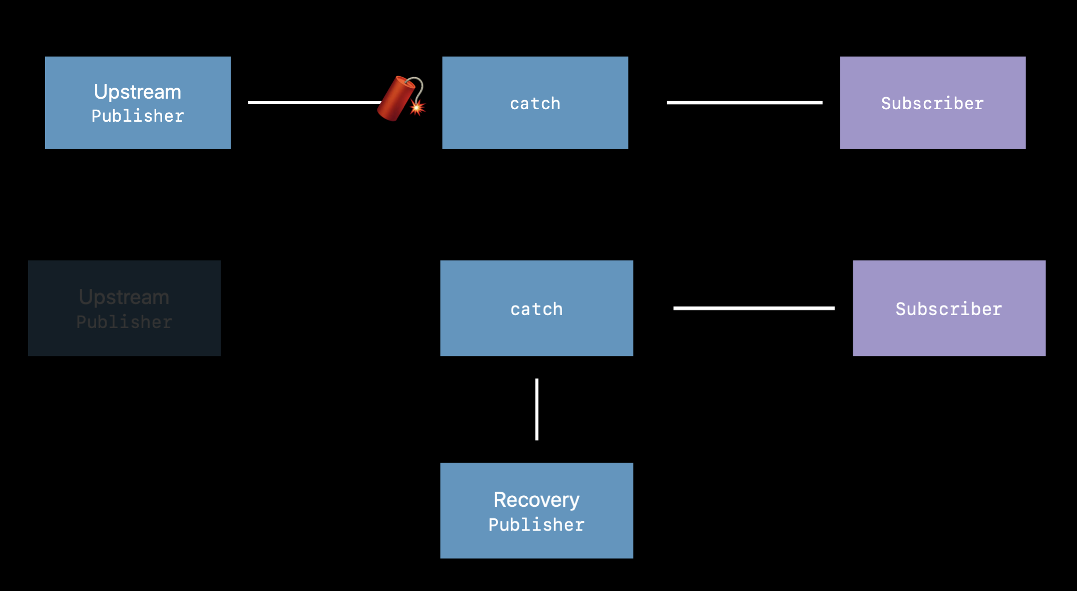 처음에 헷갈렸던 포인트를 먼저 짚어보자면, Combine의 catch operator를 제대로 이해하지 못한채 catch operator를 기존에 사용하던 do-catch문의 catch문과 동일하게 생각했던 것이 해결책을 찾는데 더 오랜 시간을 걸리게 만든 것 같습니다.