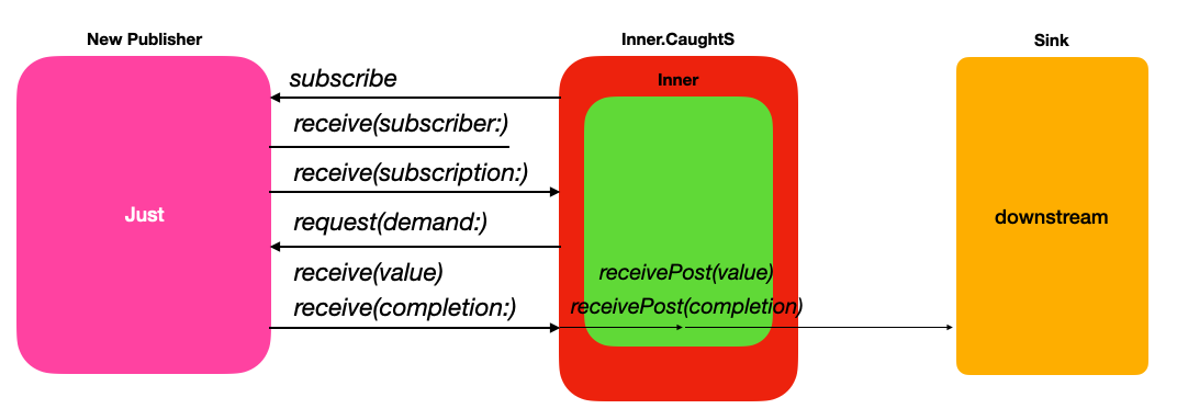 만약 Future에서 에러가 발생한다면, Catch는 New Publisher의 값을 downstream인 Sink Subscriber에게 넘기게 됩니다.
