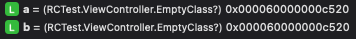 이렇게 해두면 변수 b는 a의 side table을 참조하게 될 것이기에, break point를 찍어서 메모리 주소를 확인해보면 다른 메모리주소가 찍히는건가? 싶어서 실험해본 결과..
