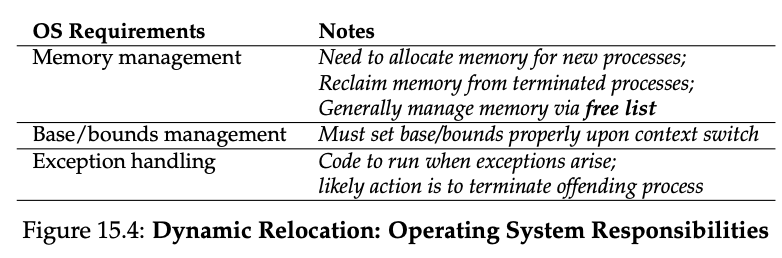 하드웨어가 dynamic relocation을 지원하기 위해 새로운 기능을 제공하는 만큼, 운영체제도 새로운 문제들을 마주하게 됩니다.